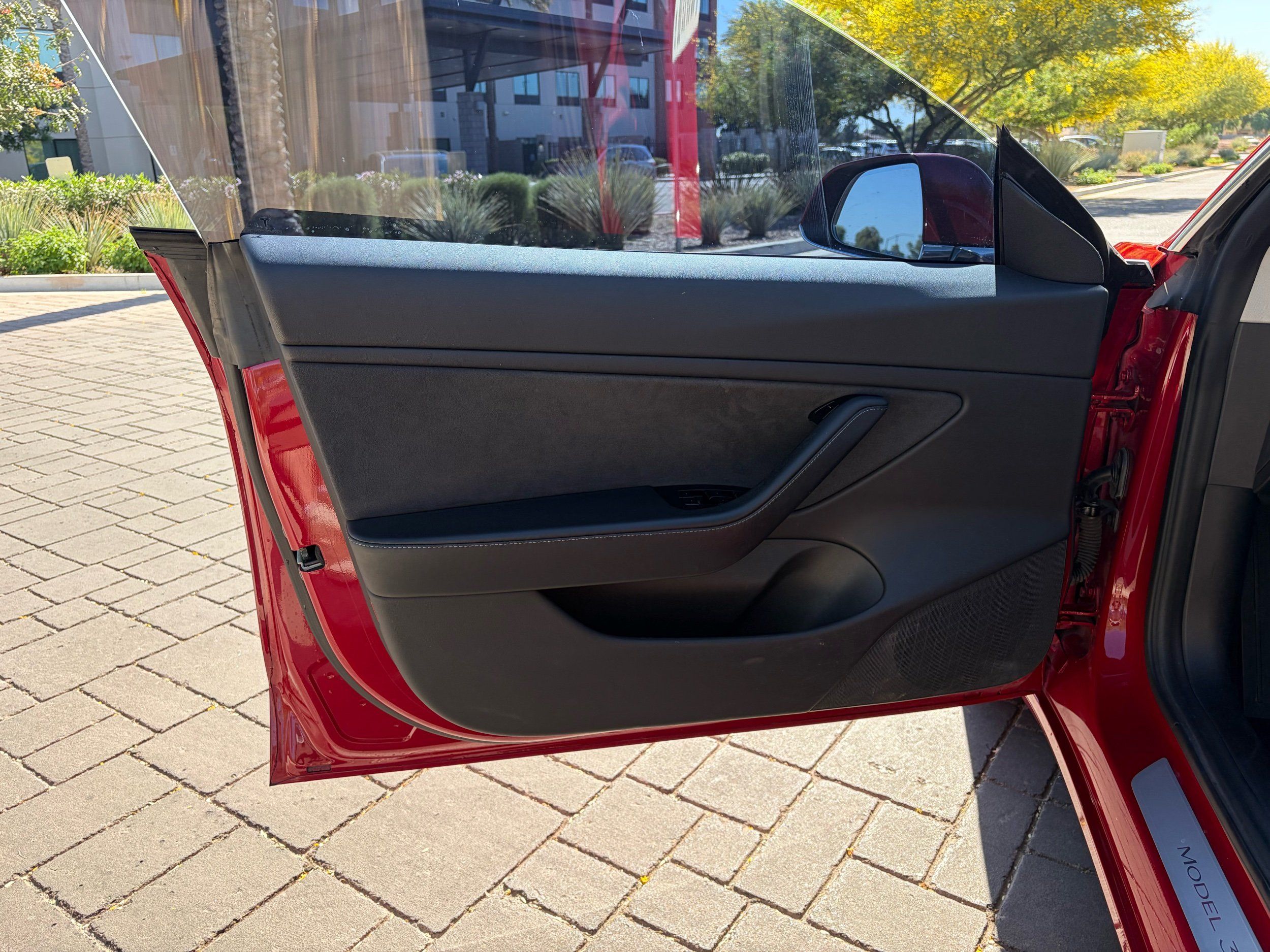 Door trim insert: Simulated suede door trim insert