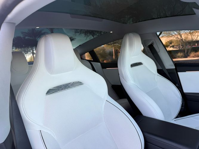 Front seatback upholstery: Plastic front seatback upholstery